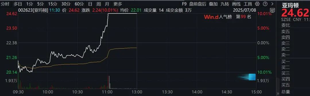 盘面上,消费电子、通信、游戏、能源金属等板块涨幅居前,体育概念、地面兵装、银行、航海设备等板块跌幅居前。 早盘光伏板块集体拉升,亚玛顿上演“地天板”,首航新能直线拉升20%涨停,亿晶光电、拓日新能、欧晶科技、大全能源等盘中涨停。消息面上,近日工信部召开第十五次制造业企业座谈会强调,依法依规、综合治理光伏行业低价无序竞争,引导企业提升产品品质,推动落后产能有序退出。